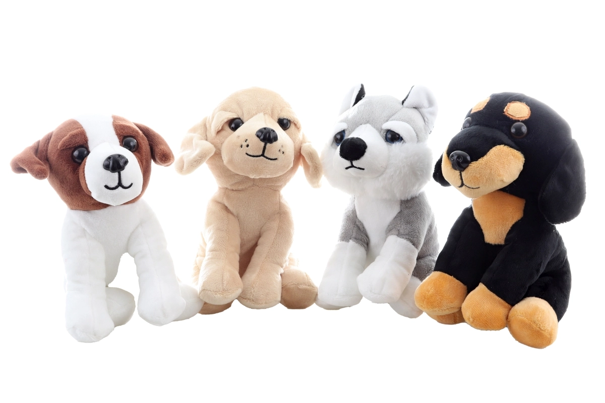 De hondjes zijn verkrijgbaar in vier schattige varianten, elk met een unieke look. Dankzij de compacte afmetingen past hij gemakkelijk in het babybedje, de kinderwagen of de rugzak.