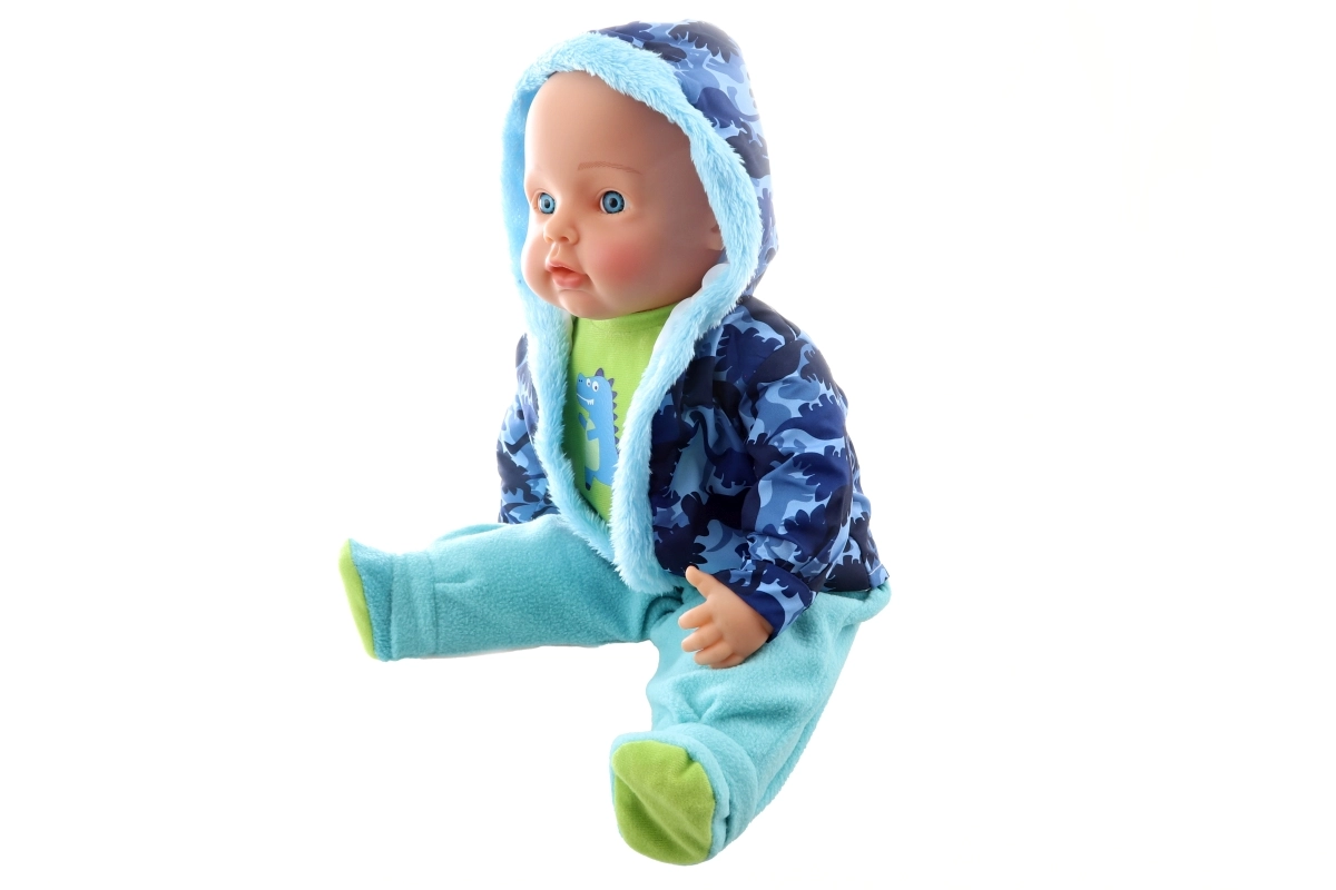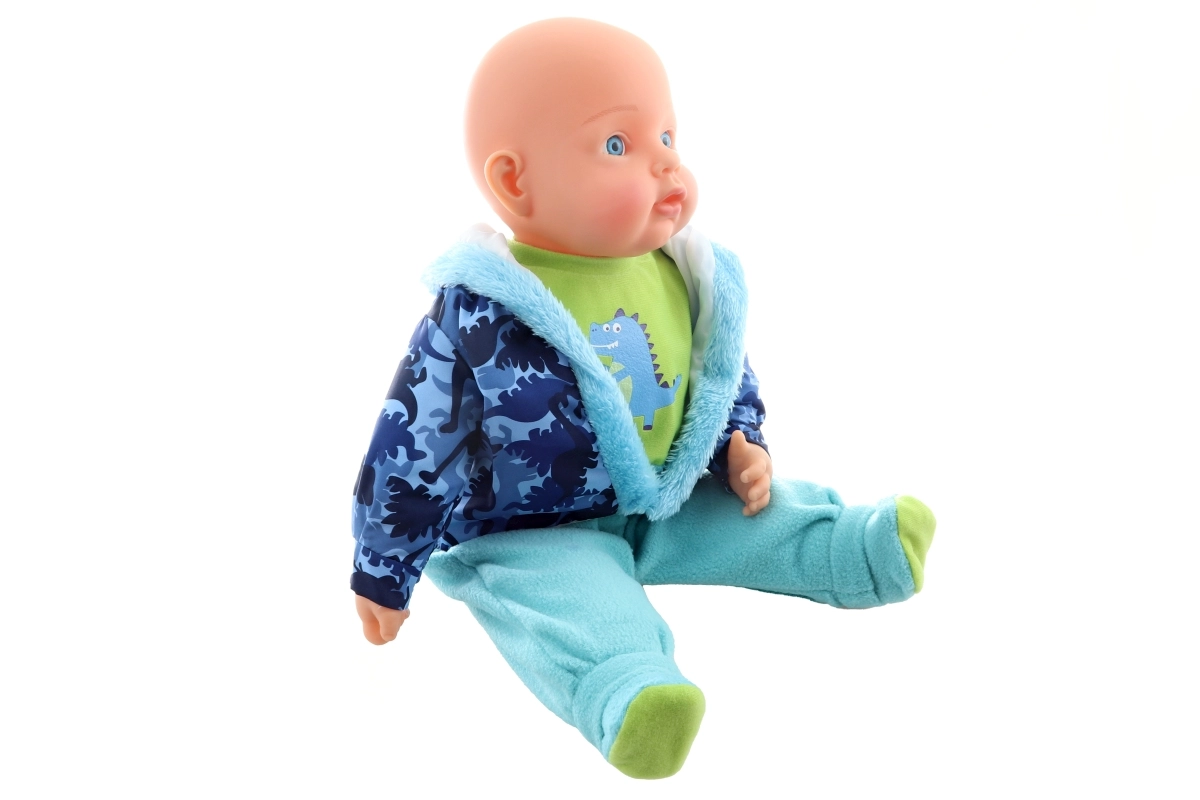 Deze grote babypop jongen is een geweldige speelkameraad voor elke dag. Dankzij het zachte lijfje ligt hij fijn in de hand en is hij heerlijk om te knuffelen, terwijl het realistische hoofd en de uiteinden van de ledematen van plastic zorgen voor een authentieke uitstraling. De stijlvolle kleding set met dinosaurusmotief is eenvoudig uit- en weer aan te trekken – ideaal om de fijne motoriek te oefenen en de fantasie te prikkelen.