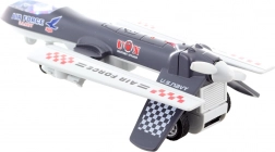 De metalen romp en gedrukte decoraties geïnspireerd op luchtvaartmotieven zijn bestand tegen dagelijks spelen en staan ook mooi op de plank.