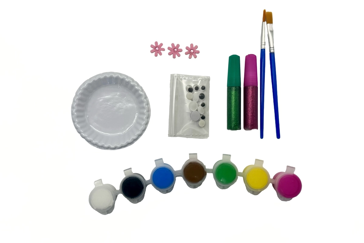 Dankzij de meegeleverde penselen, vrolijke kleuren en wiebeloogjes ontstaan originele decoraties voor de kinderkamer en cadeautjes voor vriendjes. De set stimuleert concentratie, geduld en plezier in creëren.