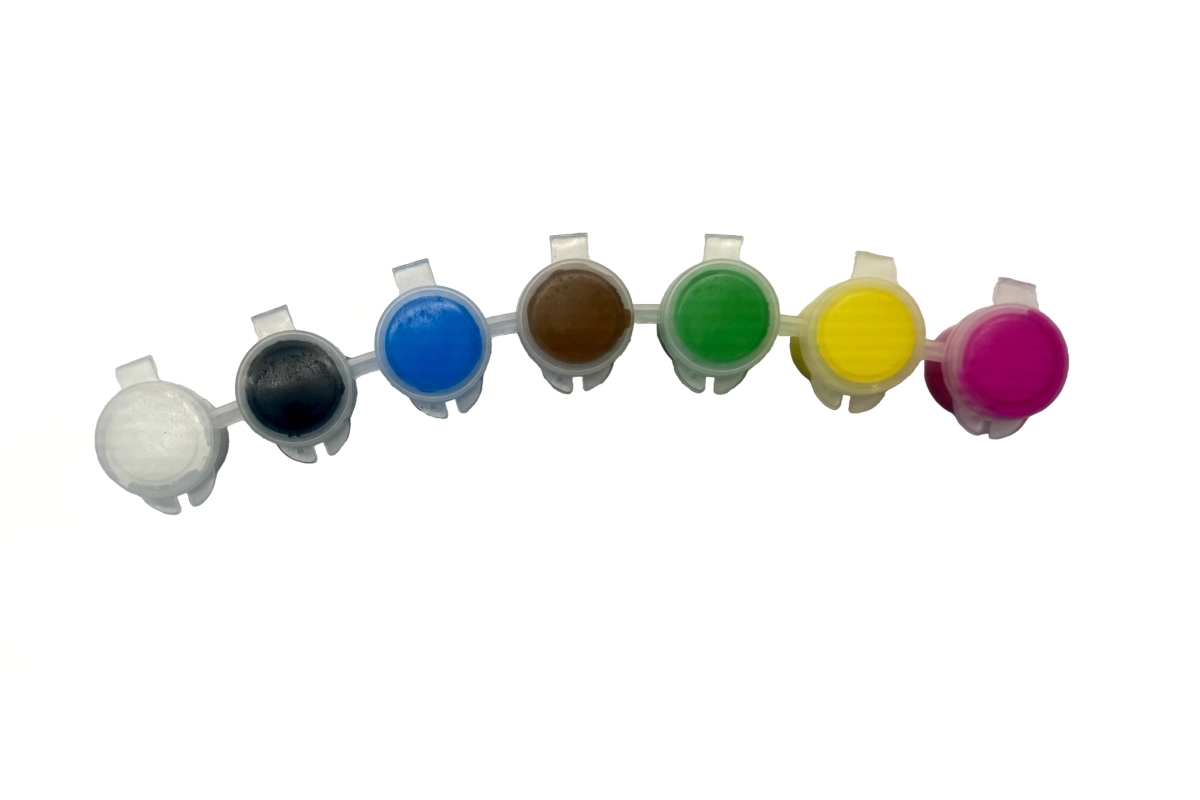 Handig geschakelde potjes met deksels houden de verf langer vers en schoon. Ideaal voor herhaald creatief bezig zijn zonder knoeien.