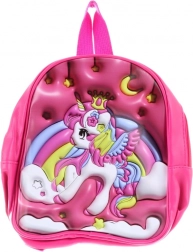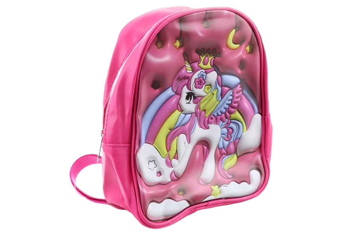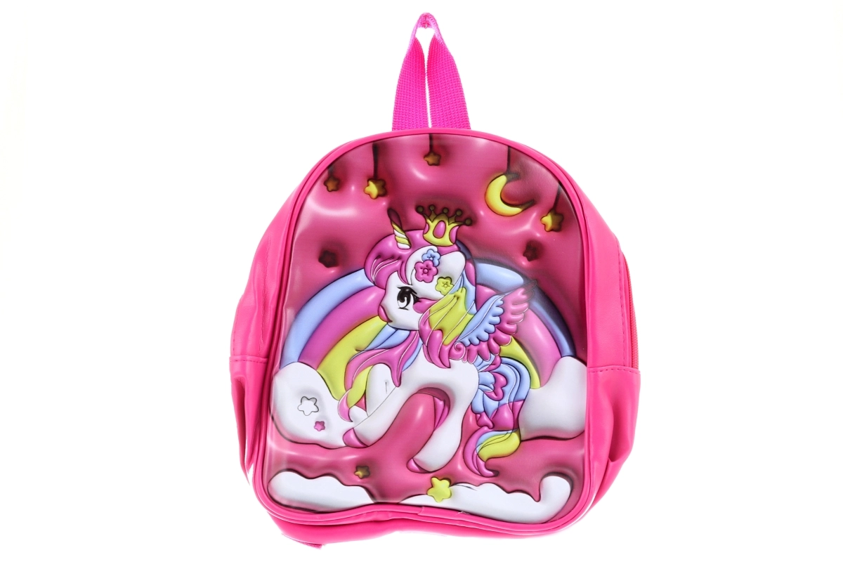 Deze stijlvolle kinderrugzak in roze valt op door het kleurrijke 3D eenhoornmotief met regenboog, sterren en maan. Eén ruim hoofdvak met rits bergt veilig kleine spulletjes, een snack of favoriet speelgoed op. Dankzij de compacte afmetingen draagt de rugzak comfortabel voor kinderen en is hij een geweldige metgezel voor uitstapjes en korte wandelingen.