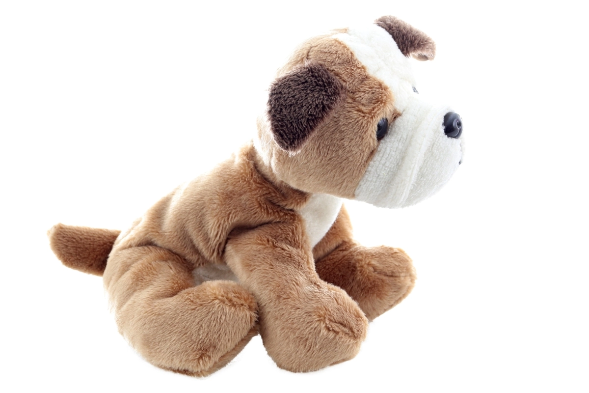 Geïntegreerde korreltjes helpen de vorm en stabiliteit te behouden, zodat de buldog mooi rechtop zit op een plank of bed.