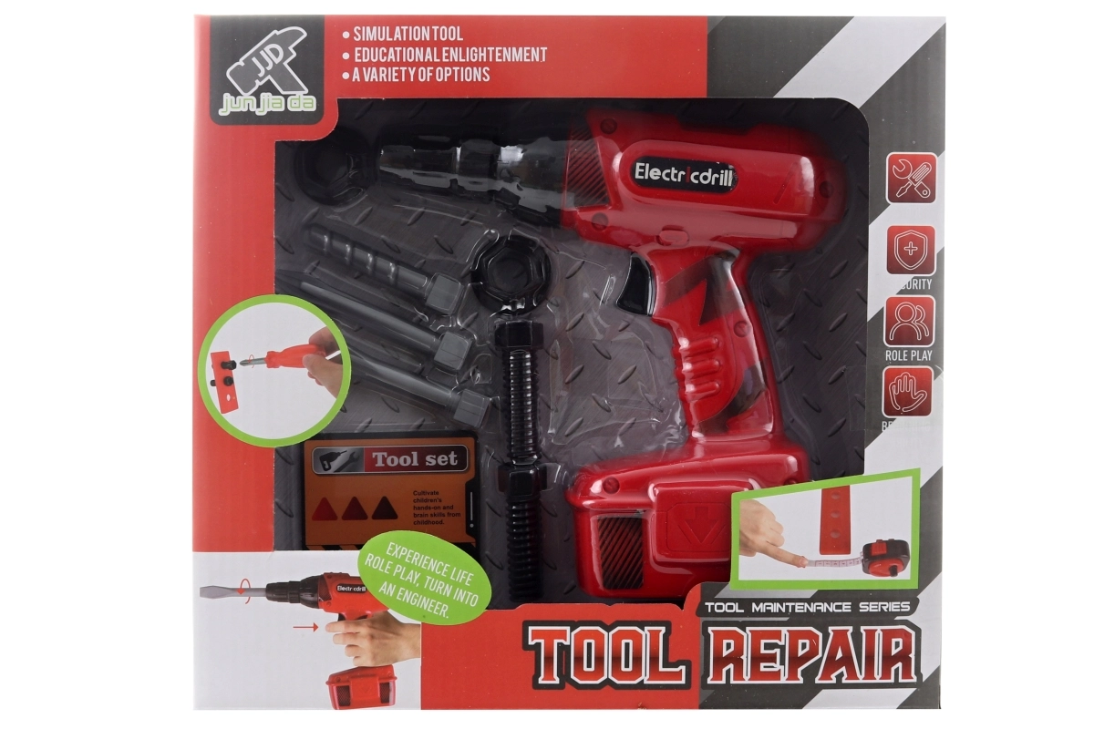 De speelgoedboor is ontworpen voor kinderen vanaf 3 jaar en stimuleert creatief spel en leren door het nabootsen van volwassenen. De voeding werkt op 2× AA-batterijen (niet inbegrepen), zodat alles klaar is voor snel speelplezier na het plaatsen van de batterijen.