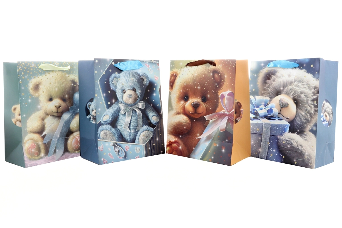 Zoek je een snelle en mooie oplossing om een cadeau in te pakken? Deze cadeautas met berenmotief is een perfecte keuze voor verjaardagen, feestdagen en kleine attenties. Dankzij het stevige papieren materiaal behoudt hij zijn vorm en zorgt hij voor veilig transport van de inhoud.