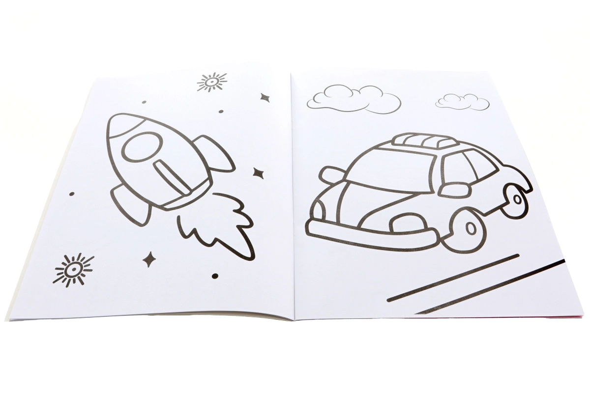 Ontdek de wereld van auto’s, treinen, boten en andere machines in thematische kleurplaten die fijne motoriek, creativiteit en geduld stimuleren. Met de bijgevoegde stickers kunnen kinderen de afbeeldingen versieren en hun eigen vervoersscènes maken.
