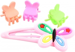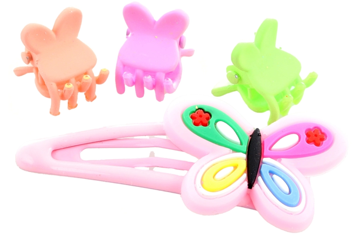 Creeër in een handomdraai een effectvol en comfortabel kapsel. Deze set haaraccessoires combineert een sierlijke clip met vlindermotief en drie praktische mini-klauwtjes die lokken op hun plaats houden zonder te trekken of het haar te breken. Dankzij het compacte formaat passen de accessoires in je handtas en zijn ze ideaal voor onderweg.