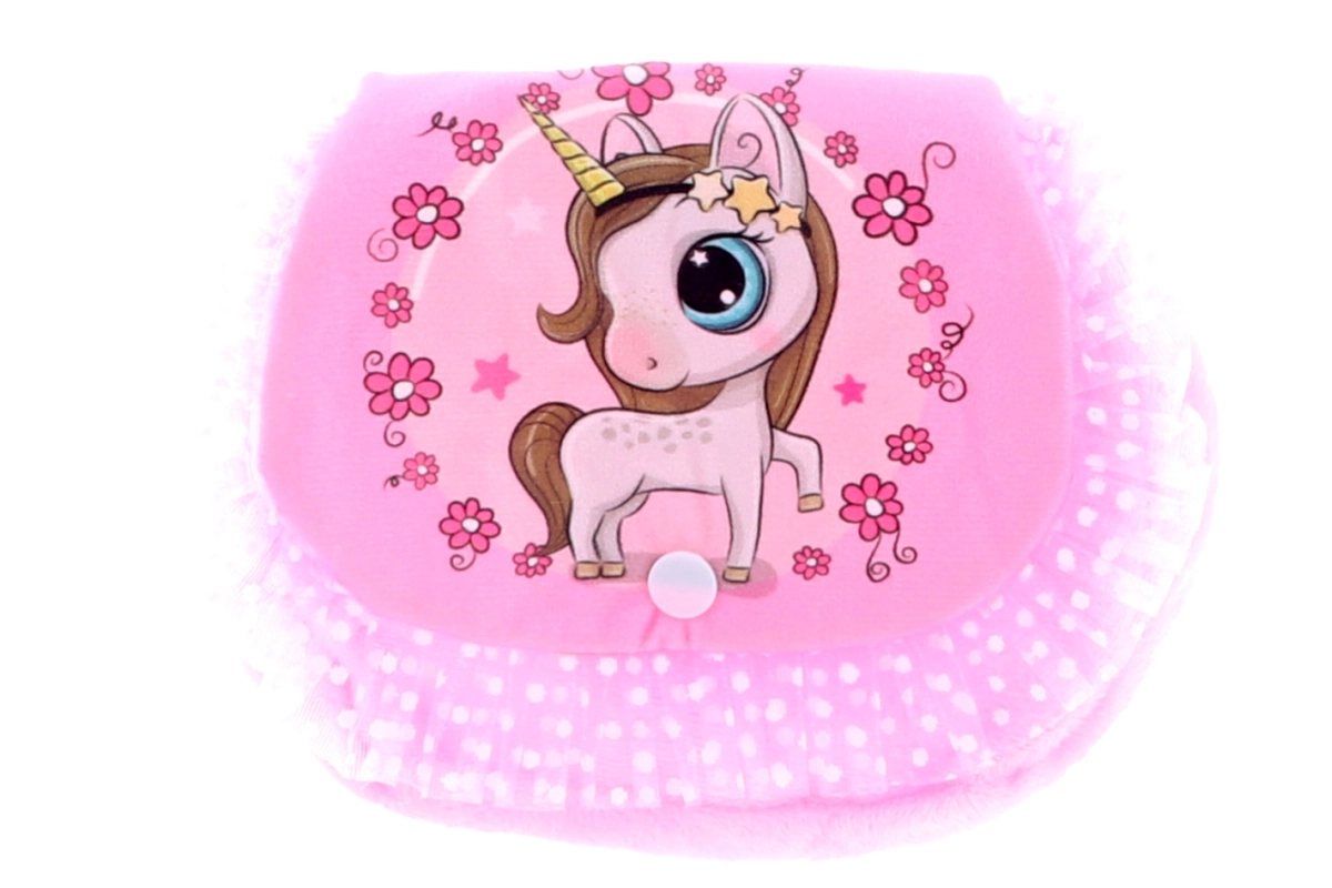 Deze stijlvolle kindertas met een eenhoornmotief valt meteen op. De zachte pluchen stof is prettig aan te raken en het compacte formaat is perfect voor sleutels, zakdoekjes, een klein portemonneetje of andere kleine schatten. Dankzij de verstelbare band kun je de tas comfortabel over de schouder dragen.