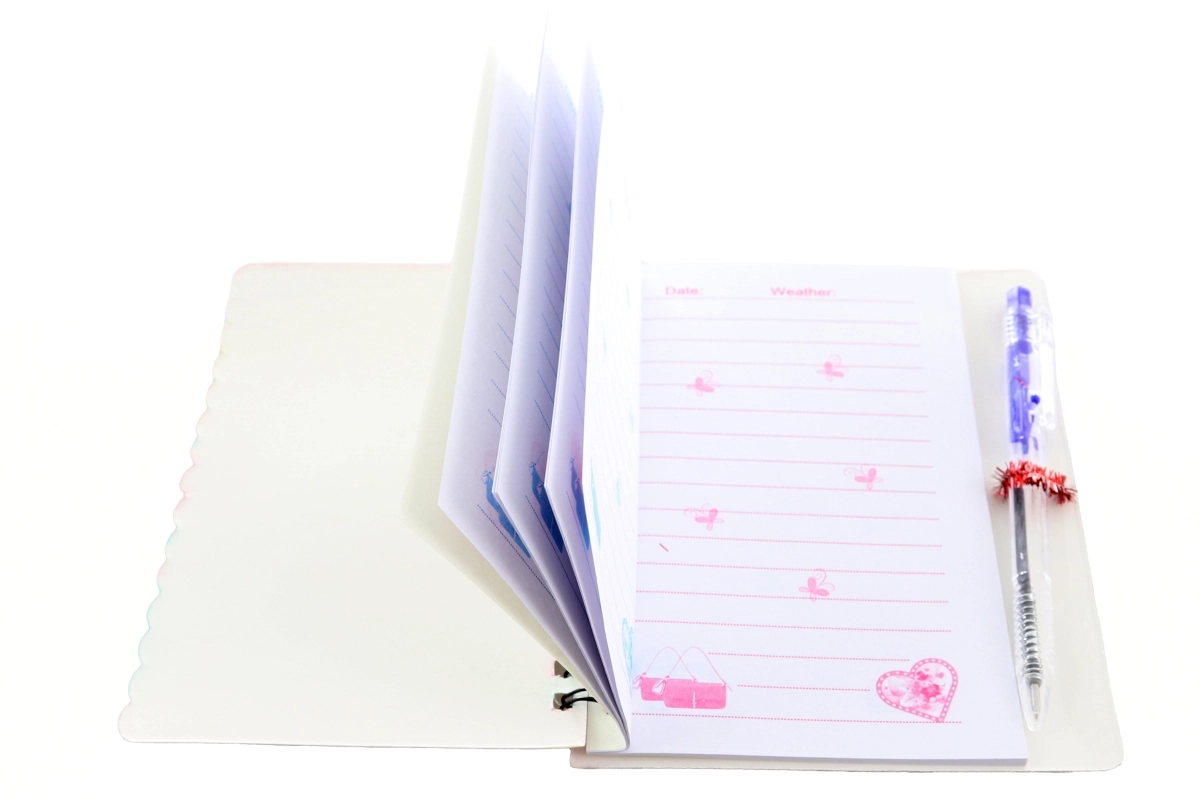 De pen is inbegrepen, dus je kunt meteen na het uitpakken beginnen schrijven. Het notitieboek is verpakt in een handig zakje en is verkrijgbaar in verschillende dessins – het exacte design wordt geleverd volgens de actuele voorraadbeschikbaarheid.