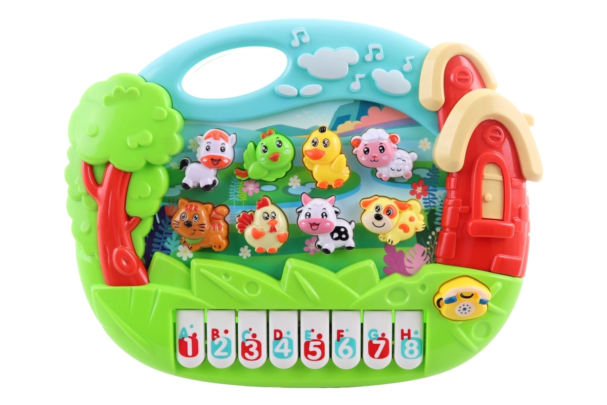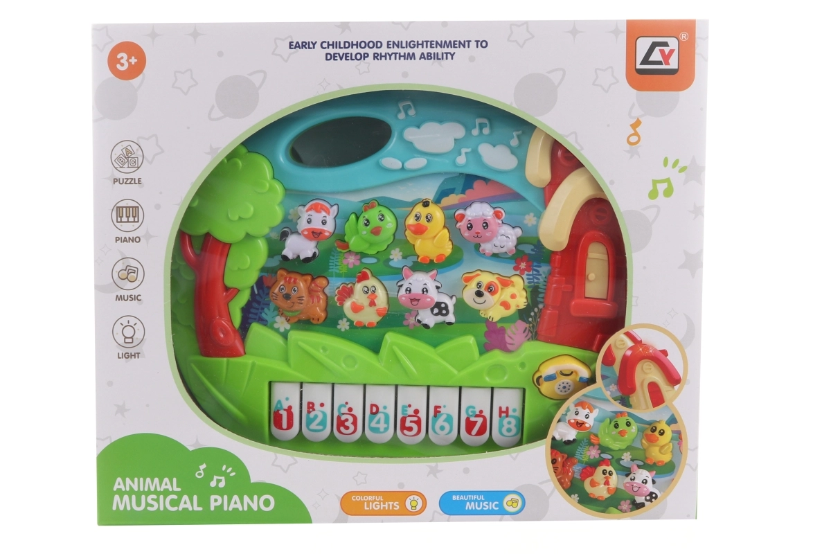 Ontdek de leuke kinderpiano met dieren die ritme, gehoor en fijne motoriek ontwikkelt. Biedt 8 toetsen met melodieën en 8 dierengeluidenknoppen, aangevuld met lichteffecten en eenvoudige bediening voor kinderen vanaf 3 jaar. Ideaal speelgoed voor de eerste kennismaking met muziek en boerderijdieren.
