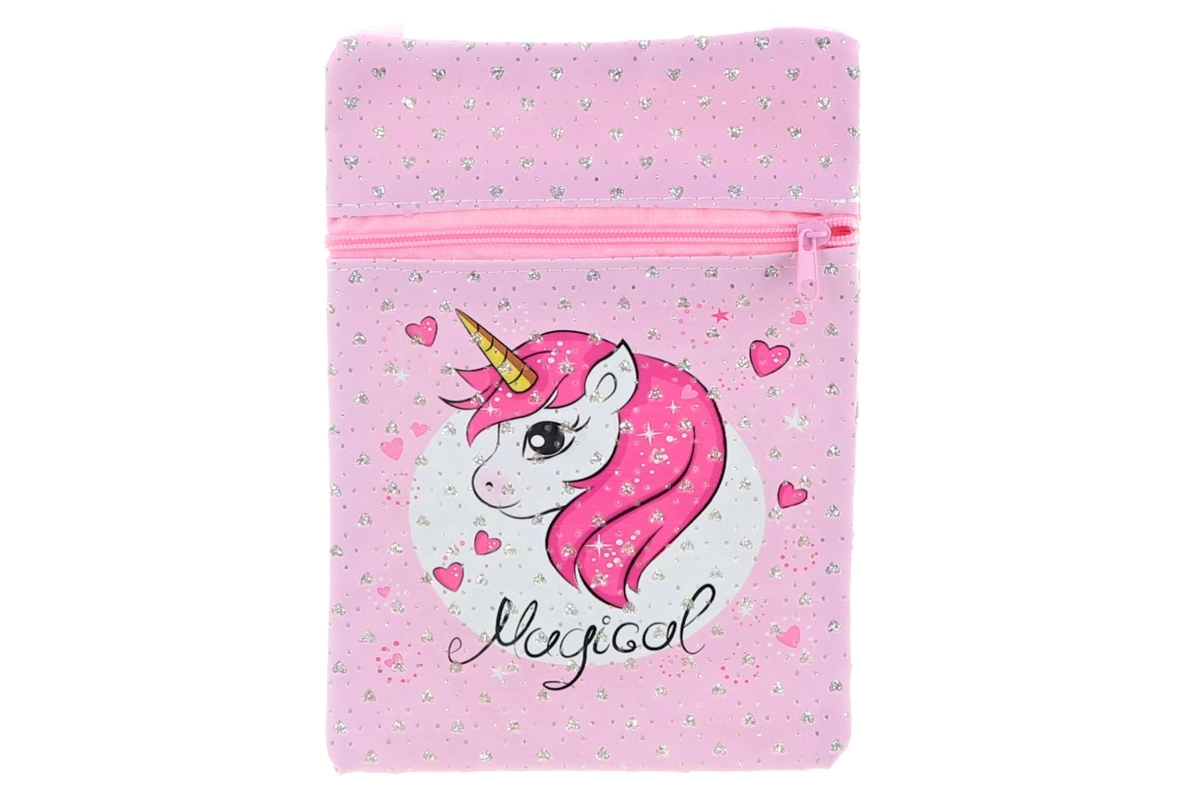 Deze elegante schoudertas met een betoverend eenhoornmotief is perfect voor dagelijks gebruik. Dankzij de compacte afmetingen passen je telefoon, sleutels en portemonnee er gemakkelijk in, terwijl de ritssluiting zorgt voor veilige opslag van al je kleinigheden.