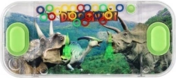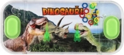 Dit populaire pocketformaat waterspel met dinosaurussen is de perfecte metgezel voor in de auto, op vakantie of tijdens vrije momenten thuis. Door de twee zijknoppen in te drukken breng je de ringen in het water in beweging en probeer je ze op de pinnetjes te plaatsen. Het eenvoudige principe en het aantrekkelijke thema zorgen voor schermloos vermaak.