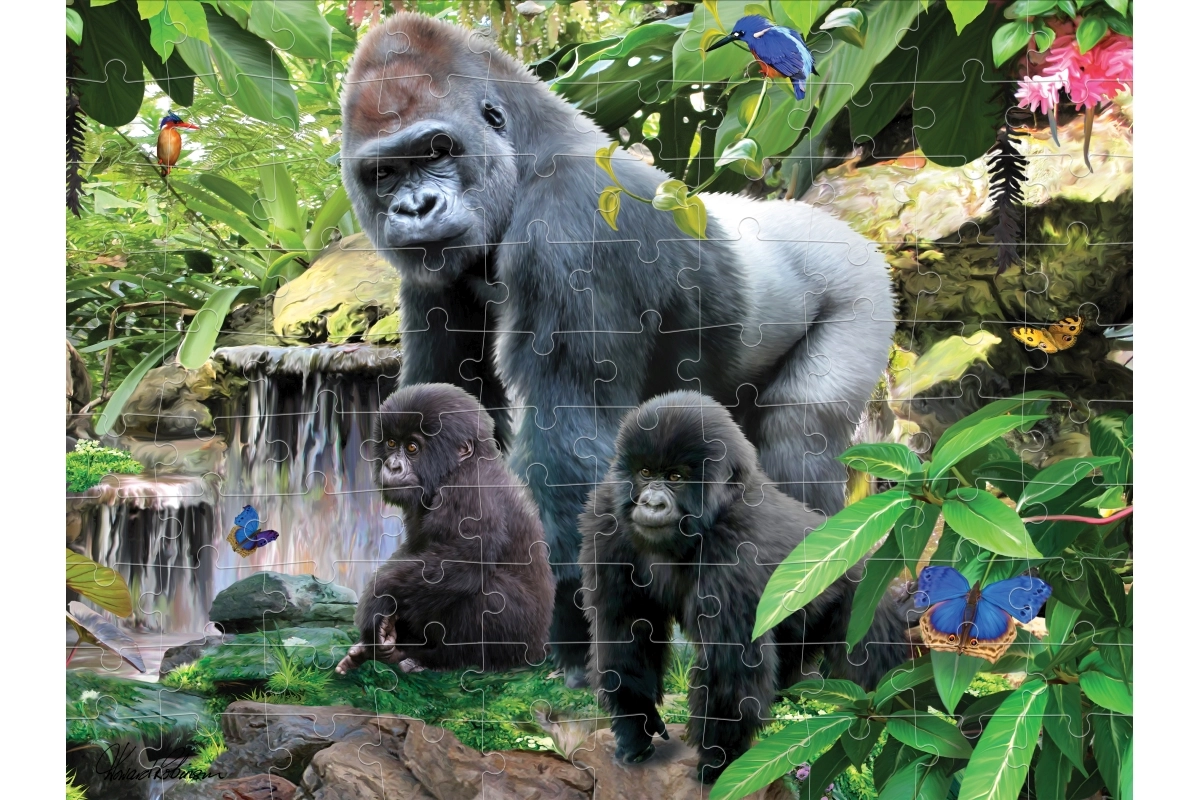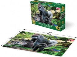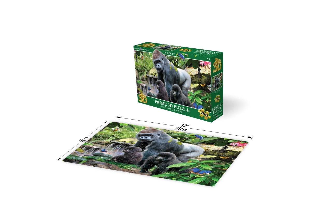 Ontdek de wereld van de wilde natuur met deze fascinerende 3D-puzzel met een gorillafamilie. Dankzij het lenticulaire effect komt het beeld tot leven en biedt het een boeiende visuele ervaring voor zowel kinderen als volwassenen. Het voltooide formaat van 31 × 23 cm is ideaal als decoratie voor de kinderkamer.
