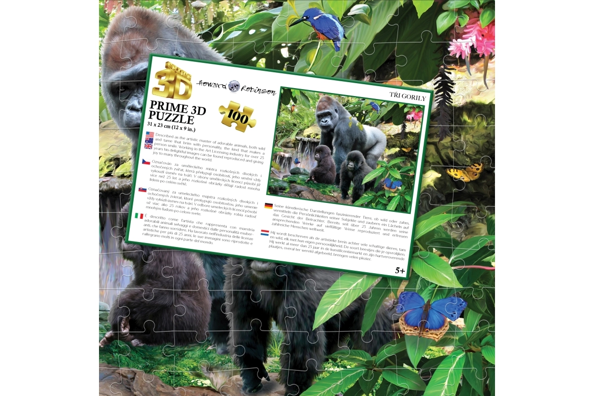 Geniet van het plezier met een realistische 3D-puzzel met gorilla’s! De puzzel met 100 stukjes biedt een indrukwekkend lenticulair 3D-effect, het voltooide beeld meet 31 × 23 cm en is ideaal voor kinderen vanaf 5 jaar.