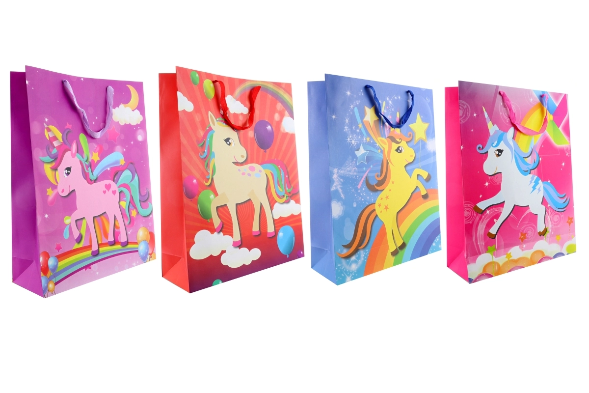 Zoek je een indrukwekkende verpakking voor een bijzonder cadeau? Deze enorme cadeautas met een betoverend eenhoorndesign valt meteen op. Het stevige papieren materiaal en het praktische formaat maken het eenvoudig om ook volumineuzere items in te pakken.