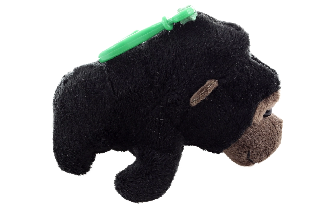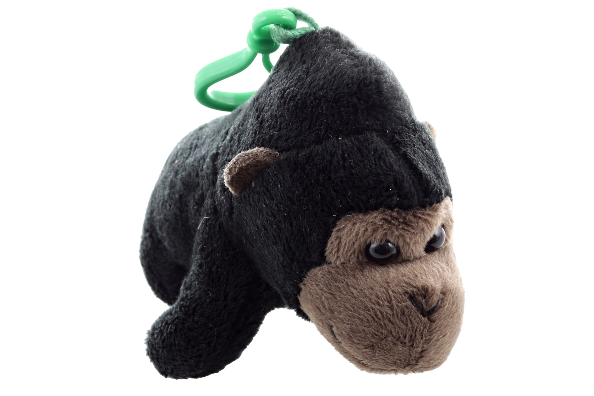 Deze stijlvolle pluchen gorilla is een geweldig accessoire voor dagelijks gebruik. De zachte zwarte vacht met bruin gezicht en opvallende kunststof ogen oogt schattig en nodigt uit om te aaien. De groene clip maakt snel en stevig bevestigen aan sleutels, schooltas of ritssluiting van de rugzak mogelijk.