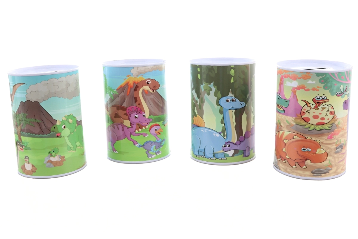 Deze metalen spaarpot met een vrolijk dinosaurusmotief is een ideale aanvulling voor de kinderkamer. Hij leert kinderen op een speelse manier met geld om te gaan en dient tegelijk als stijlvolle decoratie. Dankzij de stevige metalen constructie is hij bestand tegen dagelijks gebruik.
