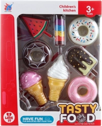 Deze set met zoetigheden is ideaal voor kinderkeukens, speelkamers en rollenspellen als winkeltje. Dankzij de lichte en stevige kunststof kunnen kinderen veilig hun fantasie, fijne motoriek en sociale vaardigheden ontwikkelen tijdens het samen spelen.