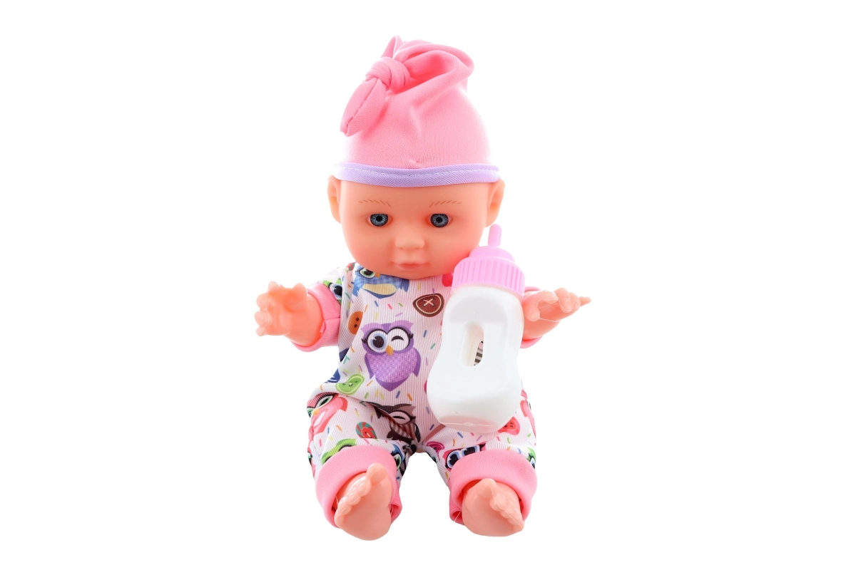 Inclusief een wit flesje voor voedingsspel en een kleurrijke outfit met uiltjes, die de pop extra charme geeft en kinderen meer speelmogelijkheden biedt.