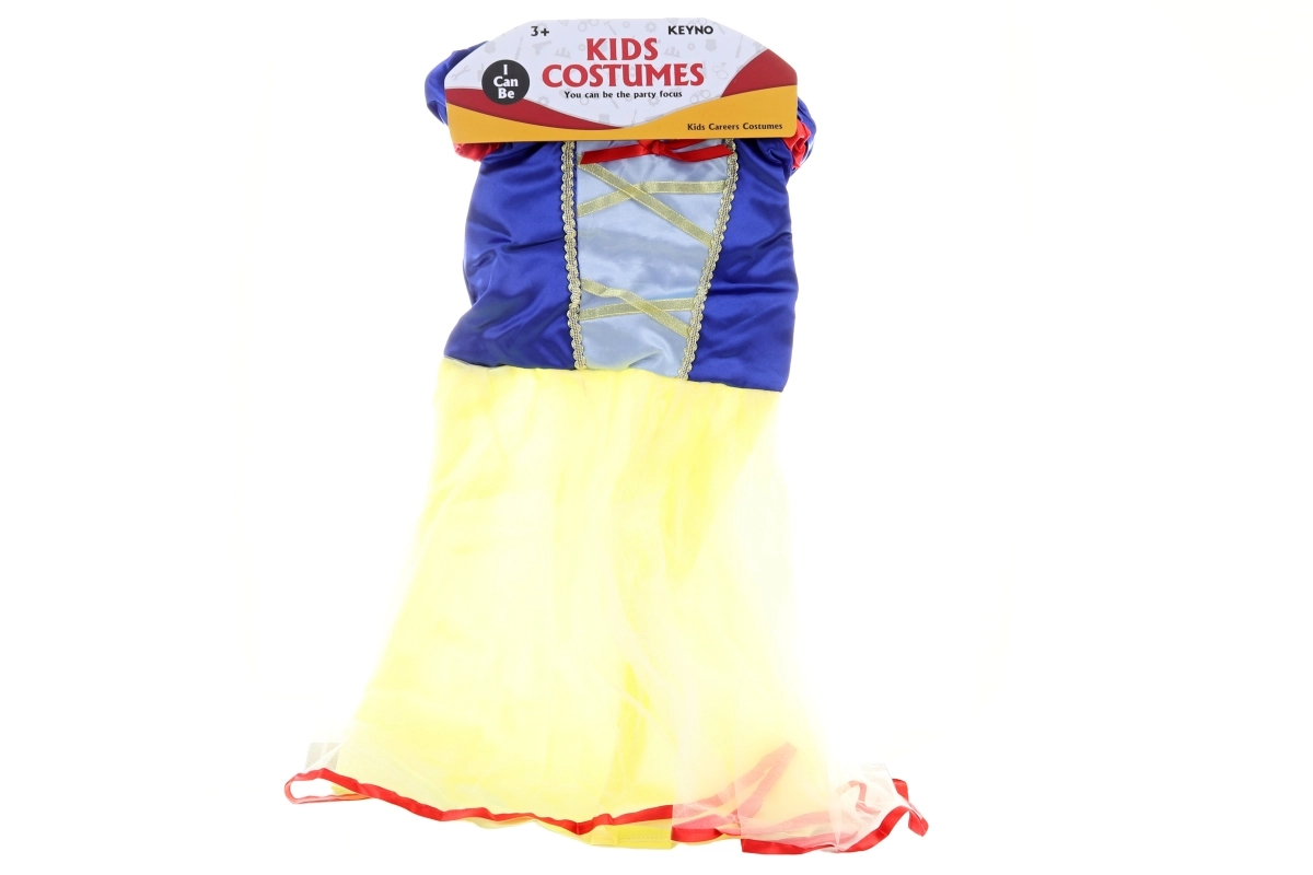 Een betoverend kinderkostuum in de stijl van Sneeuwwitje dat elke kleine prinses zal verrukken. Lichte jurk met een blauw lijfje, rode details en een lange gele rok; ideaal voor carnaval, verkleedfeesten en rollenspellen. Kwalitatieve afwerking en een comfortabele snit voor plezier bij elk avontuur.