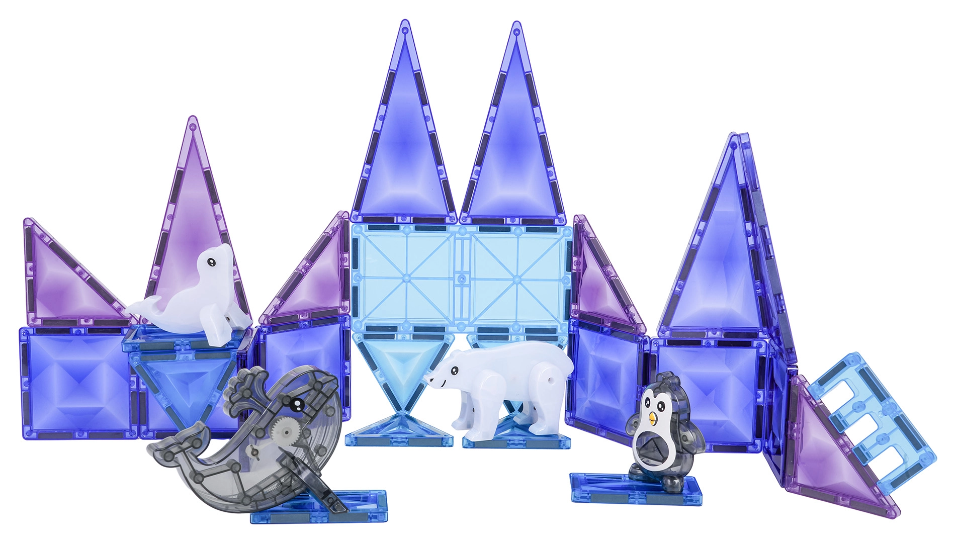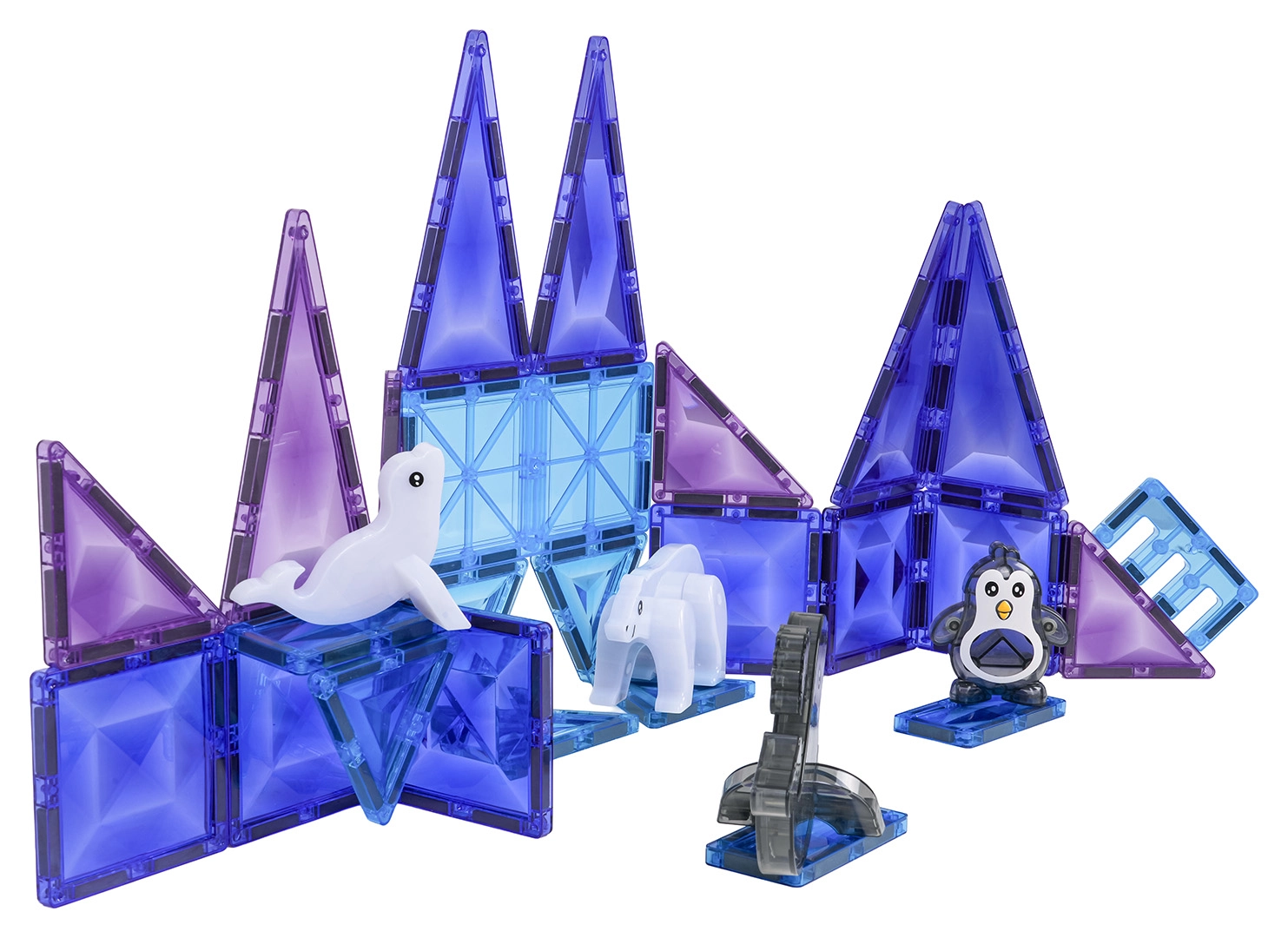 De magnetische bouwset Ice Snow is ontworpen voor kinderen vanaf 3 jaar. Halftransparante onderdelen in koele kleuren worden gestapeld tot torens, muren en ijspaleizen, terwijl de magnetische verbindingen de vorm houden en de constructies stabiel blijven. Er zijn ook schattige figuurtjes inbegrepen – een zeehond, pinguïn, dolfijn en ijsbeer – die elk spel tot leven brengen.
