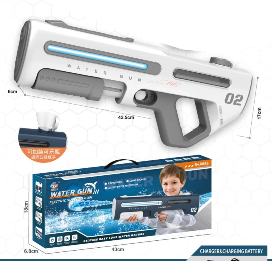 Dit witte elektrische waterpistool is een geweldige keuze voor kinderen en ouders die op zoek zijn naar een veilige en leuke zomerspeelgoed. Dankzij de ingebouwde verlichting kun je ook bij schemering spelen. Vul eenvoudig het bovenste waterreservoir, druk op de trekker en het plezier kan beginnen. Voor maximale veelzijdigheid kan het pistool ook zonder stroom – handmatig worden gebruikt.