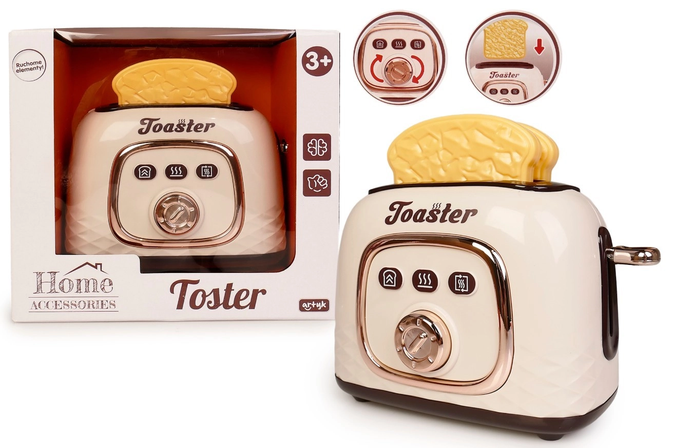 De kinderbroodrooster met toast is een ideale aanvulling voor elke speelkeuken. Dankzij de eenvoudige bediening beleven kinderen realistische ontbijtbereiding: druk op de zijknop, de toasts zakken omlaag en springen na even vanzelf omhoog.