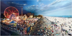 • Coney Island-motief – sfeervolle weergave overdag en ’s nachts.
