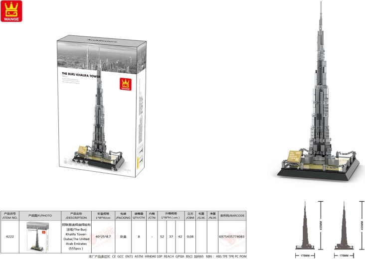 Deze gedetailleerde bouwset uit de reeks “gebouwen” maakt het mogelijk een stijlvol model te bouwen van de bekendste wolkenkrabber van Dubai – de BURJ KHALIFA. Dankzij doordachte onderdelen en een visuele handleiding is het bouwen leuk en overzichtelijk, en komt het eindmodel prachtig tot zijn recht op een plank of bureau.