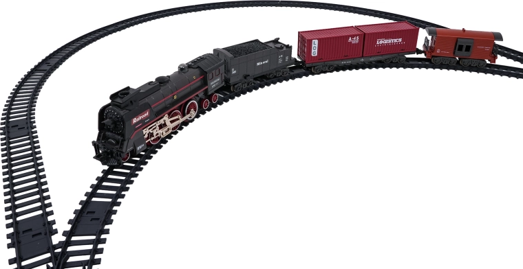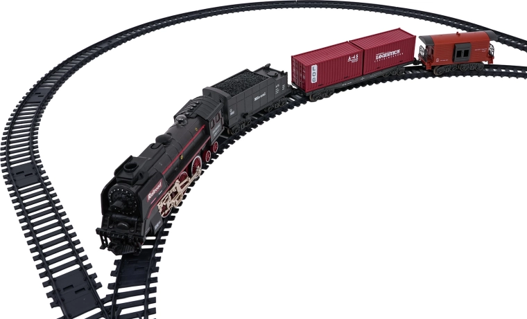 Stijlvolle retro treinbaan voor kinderen vanaf 3 jaar met lichteffecten, realistische rijgeluiden en indrukwekkende rook uit de schoorsteen. Opladen via de meegeleverde accu 3,7 V 1200 mAh en eenvoudig te monteren dankzij duurzame, veilige rails met een simpel kliksysteem. De locomotief rijdt vooruit en achteruit, kan stoppen en de geluiden zijn uit te schakelen voor rustig spelen.