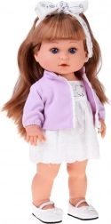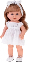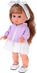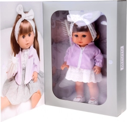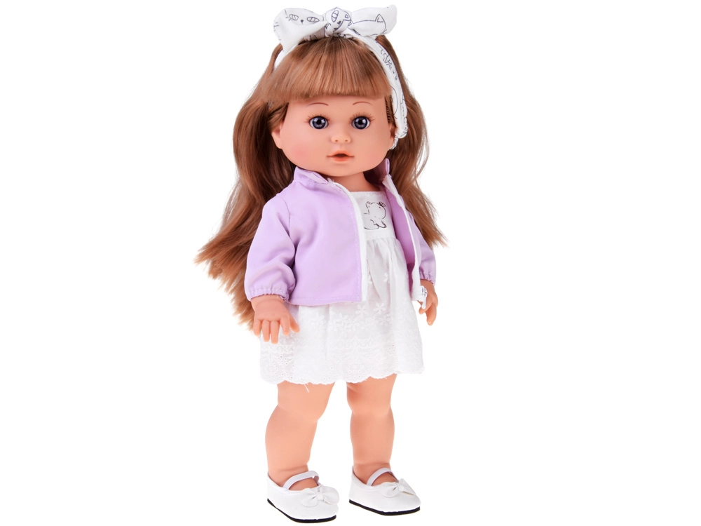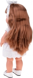 Deze stijlvolle pop is een geweldige speelkameraad voor dagelijks plezier. Dankzij het lange, volle haar en de meegeleverde borstel genieten kinderen van kammen, vlechten en stylen. De elegante outfit met kanten details, witte schoentjes en haarband met strik benadrukt de moderne look van de pop.