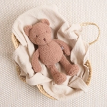 De schattige pluchen teddybeer Mika van het merk Bieco is een zachte knuffel van luchtige bouclé-stof in een warme chocoladetint. Hij is superzacht, ideaal om te knuffelen en te omarmen, en dient ook perfect als comfortabel kussentje. Dankzij de losse armpjes en beentjes ligt hij fijn in kleine handjes en stoort hij niet tijdens het slapen of spelen. Geschikt vanaf 0 maanden, getest volgens EN 71 en onafhankelijk gecontroleerd op schadelijke stoffen.