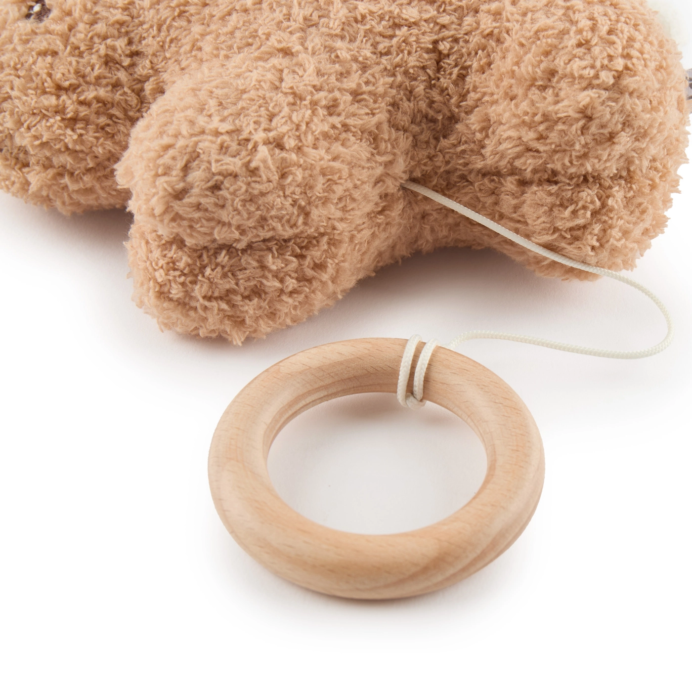 Na het trekken aan de houten ring klinkt een zachte melodie die je baby helpt te kalmeren en zoet in slaap te vallen.