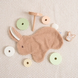 Het zachte, knuffelbare doekje in de vorm van een konijntje wordt al snel het favoriete maatje van je baby. Het aaibare oppervlak voelt prettig aan, terwijl de getextureerde stof en knisperende elementen de zintuigontwikkeling en natuurlijke nieuwsgierigheid stimuleren. Dankzij de lichte constructie is het knuffeldoekje gemakkelijk vast te houden, zelfs voor de kleinste handjes.