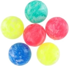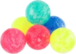 Een stuiterbal is een balletje dat mooi van de grond terugkaatst. Deze set van 6 kleurrijke, gemarmerde ballen is bijzonder. Probeer alle zes stuiterballen tegelijk te laten vallen! Of deel ze met je vrienden! Diameter van de stuiterbal: 3 cm Geschikt voor kinderen vanaf 3 jaar