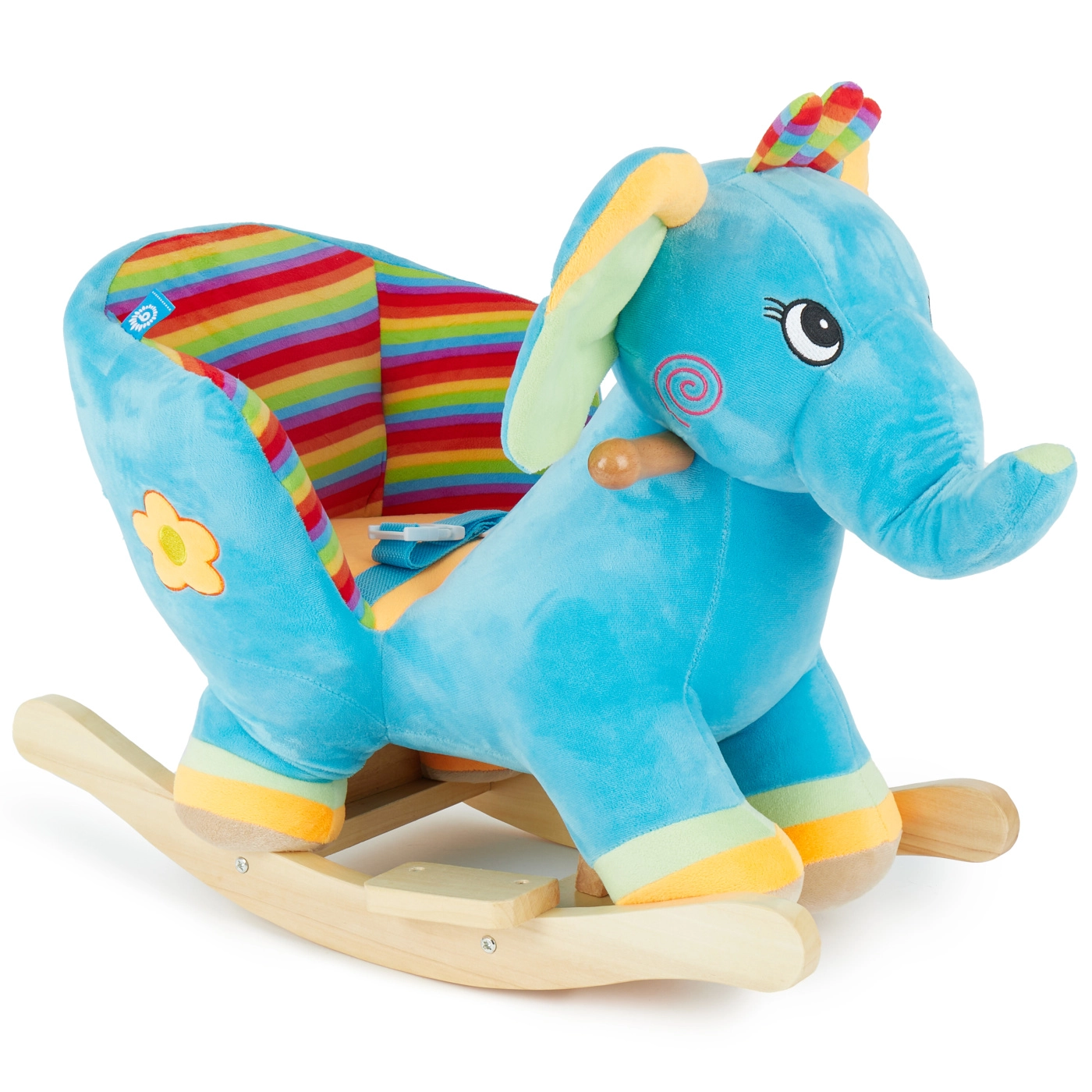 De schommolifant van het merk BIECO is het ideale eerste schommelspeelgoed voor de allerkleinsten. Zachte pluche, een ondersteunend, omsluitend zitje en een veiligheidsriem zorgen voor comfort en zekerheid tijdens het schommelen. De houten handgreep en de lage zithoogte (ca. 14 cm) maken op- en afstappen eenvoudig.
