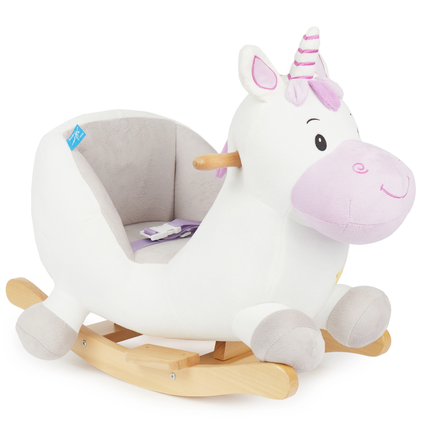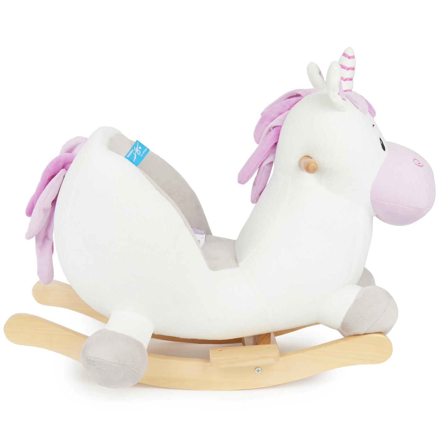 De schommelende eenhoorn van Bieco verandert elke schommelrit in een veilig en vrolijk avontuur. De zachte, knusse zitting met gordel houdt kleine rijders stevig op hun plek, terwijl de massieve houten glijders met kantelbeveiliging stabiliteit bieden. Ergonomische houten handvatten en de lage zithoogte (ca. 14 cm) maken op- en afstappen gemakkelijk.