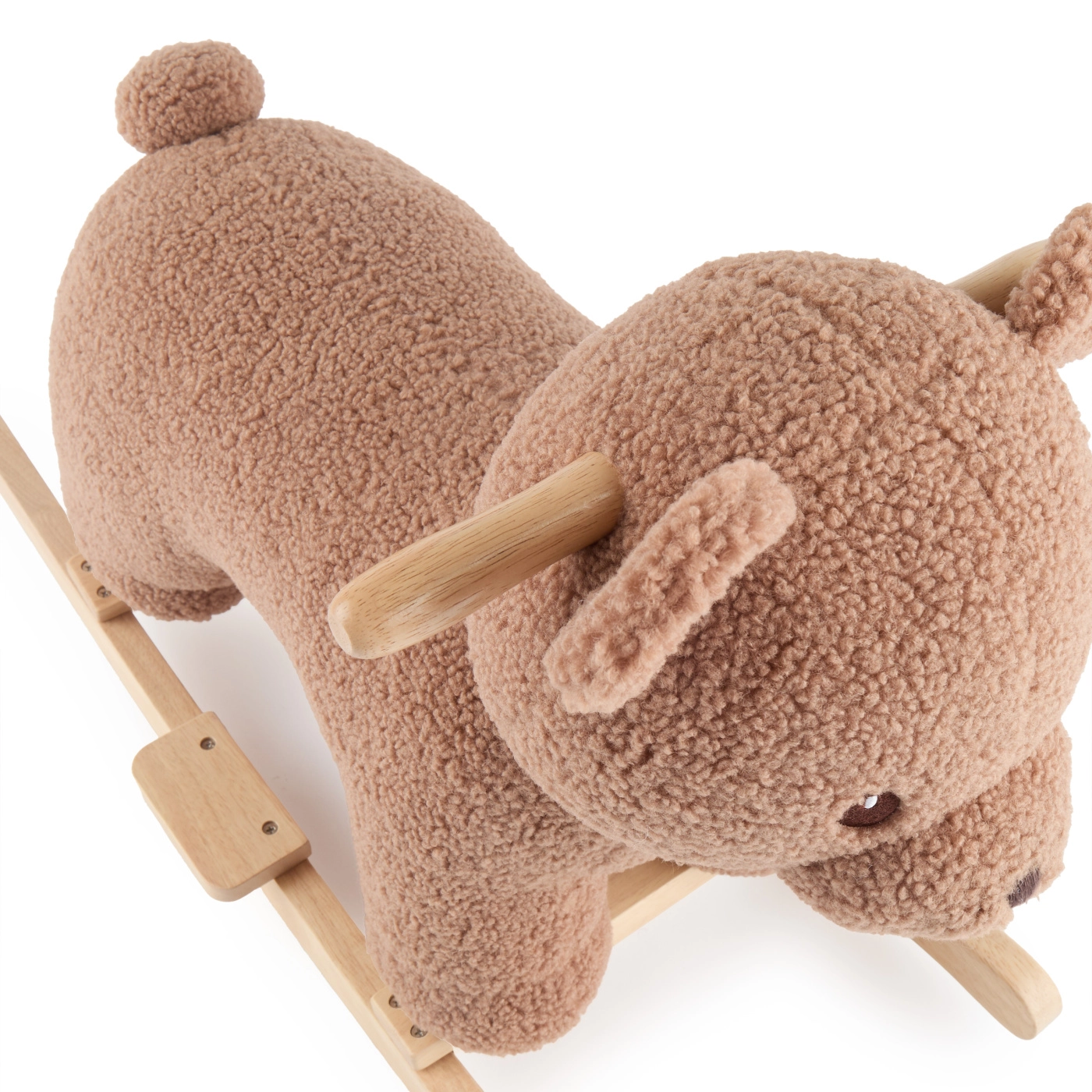 De schommelbeer MIKA is een zachte kameraad voor de eerste avonturen van je kind. De knuffelige bouclé hoes nodigt uit om te knuffelen, terwijl de stabiele houten basis zorgt voor veilig schommelen. Past perfect in elke kinderkamer als stijlvolle en functionele speelgoedklassieker.