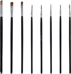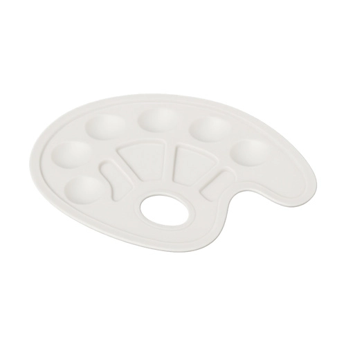 Set van 10 penselen (vlak en rond) en een licht kunststof palet met kuipjes en duimgat voor comfortabel mengen en detailwerk.