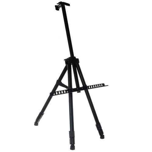 Telescopische poten, vergrendelingen en een bovenklem houden het doek stevig vast. Geschikt om zittend of staand te schilderen en eenvoudig inklapbaar voor op reis.