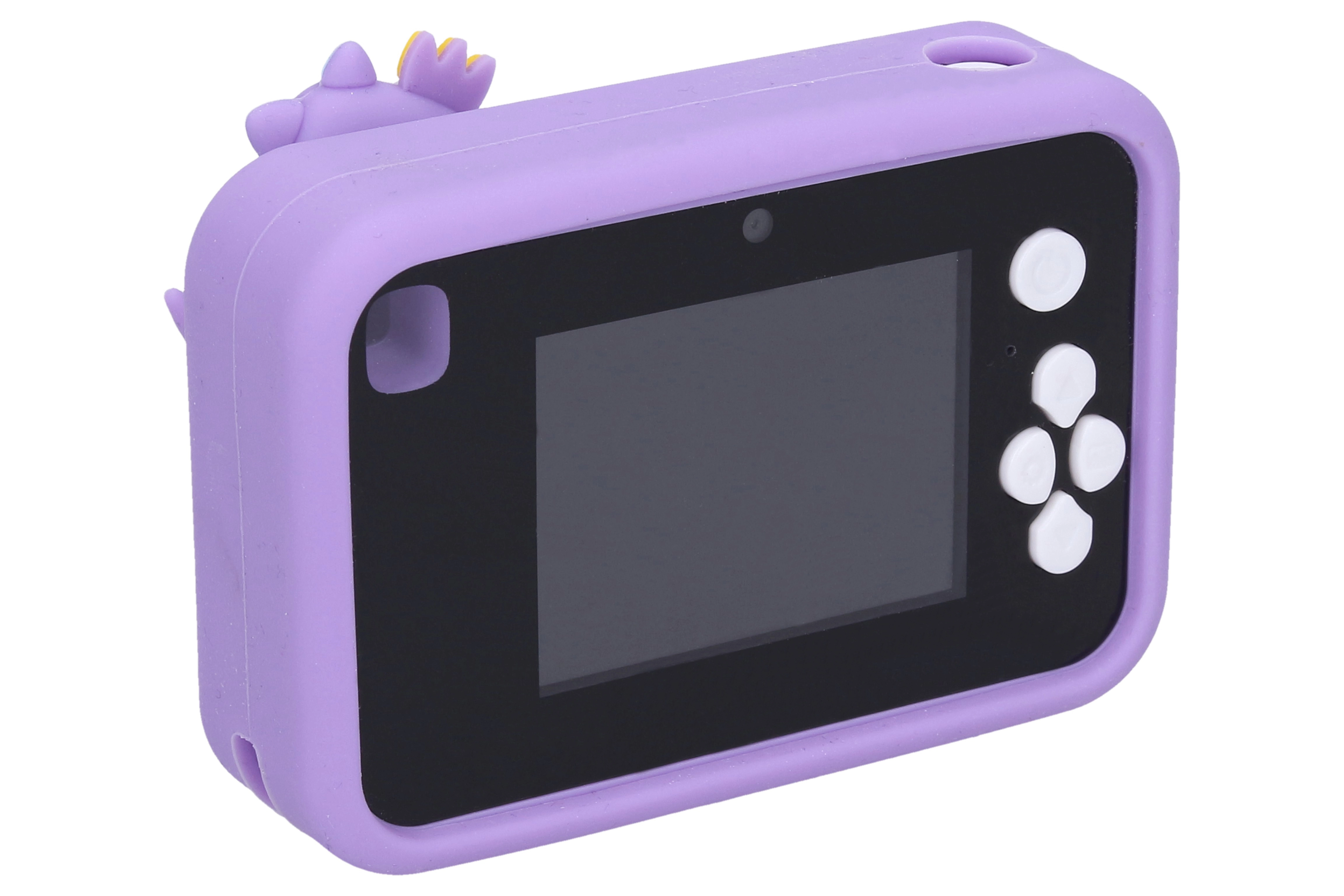 Deze gebruiksvriendelijke kindercamera is ontworpen voor jonge fotografen – met een robuuste siliconen hoes met dinosaurusmotief, compacte afmetingen van 10 × 4,5 × 7 cm en antislipvormen voor een zekere greep. Dankzij de 48 Mpx-resolutie maak je scherpe beelden en Full HD (1920 × 1080) video vol details. Het 2,4"-LCD maakt bekijken en instellen eenvoudig.