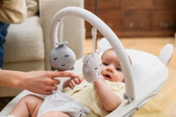 Onderdeel is een afneembare speelboog met twee speeltjes die de zintuiglijke ontwikkeling en motorische coördinatie ondersteunen. De hoes is eenvoudig afneembaar en wasbaar, zodat de wipstoel altijd hygiënisch schoon blijft. Dankzij het lichte en compacte ontwerp verplaats je hem gemakkelijk door het huis.