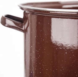 Praktische en duurzame geëmailleerde pan in bruine kleur, een uitstekende keuze voor huishoudens en gastronomie. Dankzij de grote inhoud van 20 liter kookt u gemakkelijk soepen, bouillons, knoedels of steriliseert u weckpotten. Het geëmailleerde oppervlak is glad, hygiënisch en eenvoudig te onderhouden.