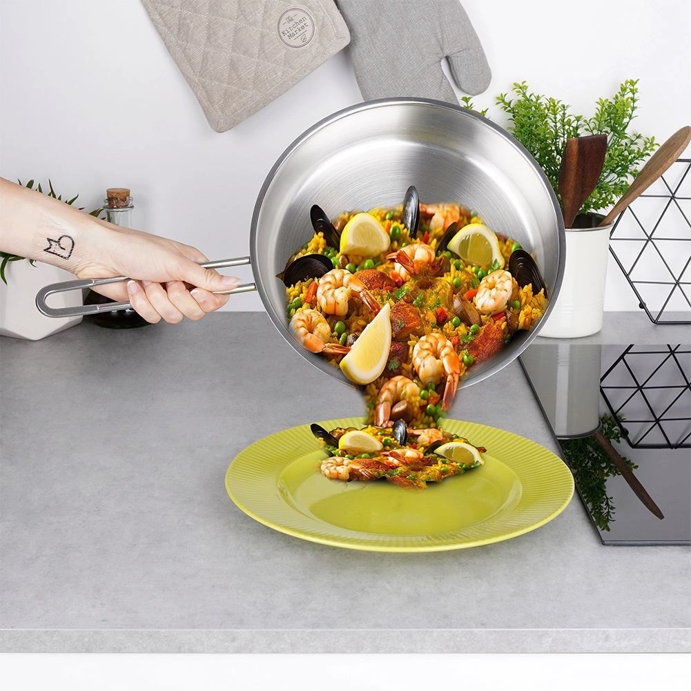 De meerlaagse, energiezuinige bodem geleidt en houdt warmte uitstekend vast, zodat u snel opwarmt, energie bespaart en geweldige kookresultaten behaalt. De pan is compatibel met gas-, elektrische, keramische, halogeen- en inductiekookplaten. Dankzij de goed gevormde kuip en de mogelijkheid tot reiniging in de vaatwasser is het onderhoud eenvoudig en snel.