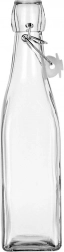 Elegante glazen fles in retrostijl met een inhoud van 530 ml met een strakke beugelsluiting en een sterke siliconen afdichtingsring. Ideaal voor limonades, sappen, ijsthee en zelfgemaakte siropen, wijn, likeuren en oliën. Het transparante gedecoreerde glas komt prachtig tot zijn recht op elke tafel.