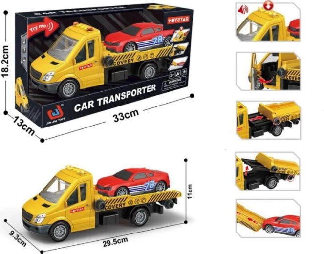 Geniet van actievol speelplezier met een realistische set van een takelwagen en een raceauto. De speelgoedset biedt LED-verlichting, geluidseffecten en is gemaakt van duurzaam ABS-kunststof. Ideaal voor kinderen vanaf 3 jaar.
