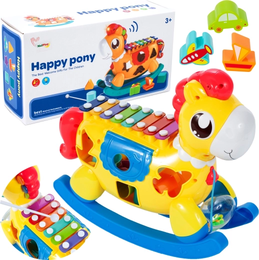 Dit schattige hobbelpaard biedt kinderen veel activiteiten in één speelgoed. Dankzij de geïntegreerde sorter oefenen kinderen hun fijne motoriek en logisch denken, terwijl de cimbalen zorgen voor de eerste muzikale ervaringen. Het draaien van de staart met kralen creëert een aanmoedigend rammelend geluid dat nieuwsgierigheid en zintuiglijke waarneming prikkelt.