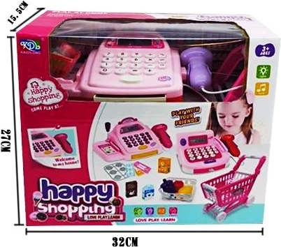 Leuke kinderkassa met supermarktkar en accessoires voor realistisch winkeltje spelen. De kassa heeft een digitale LCD-display en werkt als een echte rekenmachine, zodat kinderen aankopen kunnen optellen en zowel rekenen als communicatie oefenen. Een geweldige keuze voor fantasieontwikkeling en urenlang speelplezier.