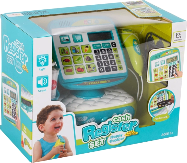 Kinderkassa met fastfoodpaneel voor leuk winkeltje spelen. Stimuleert de verbeelding, leert rekenen en bevordert de fijne motoriek. Interactieve kassa met accessoires, ideaal voor kleine verkopers vanaf 3 jaar, werkt op 2× AA-batterijen (niet inbegrepen).