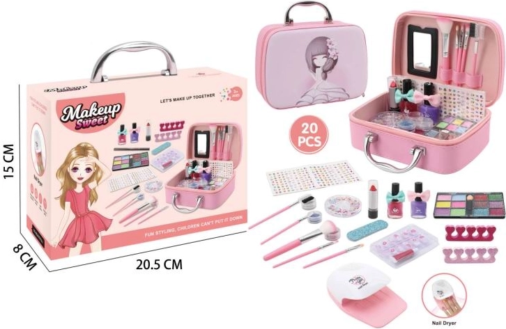 Deze make-upset in een elegante koffer is ideaal voor beginners en enthousiaste make-upliefhebbers. Gesloten is de koffer compact en beschermt de inhoud veilig; na openen biedt hij een overzichtelijke indeling voor een gemakkelijke keuze van make-up. Dankzij het comfortabele handvat is de koffer prettig te dragen en geschikt voor reizen, school en bezoekjes.